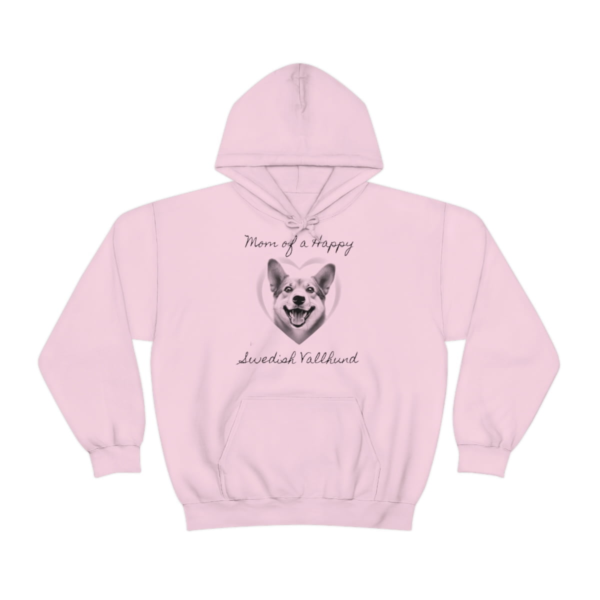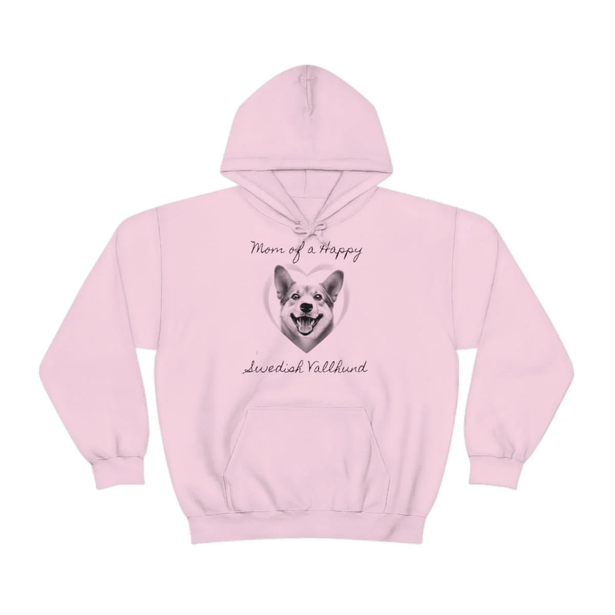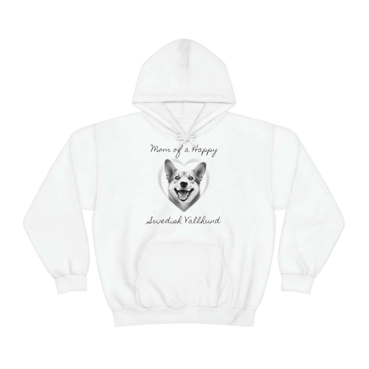 Embrace your love for your Swedish Vallhund and make a fashionable statement with our “Mom of a Happy Swedish Vallhund” hoodie today!