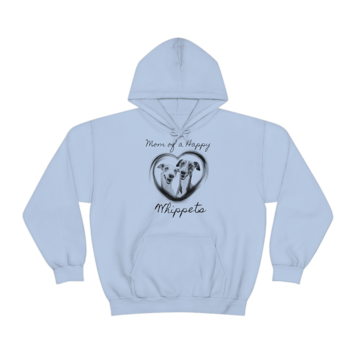 Omfamna din passion för Whippets och visa upp den med stolthet – beställ din ”Mom of Happy Whippets” Hoodie idag och njut av stilfull värme och komfort!
