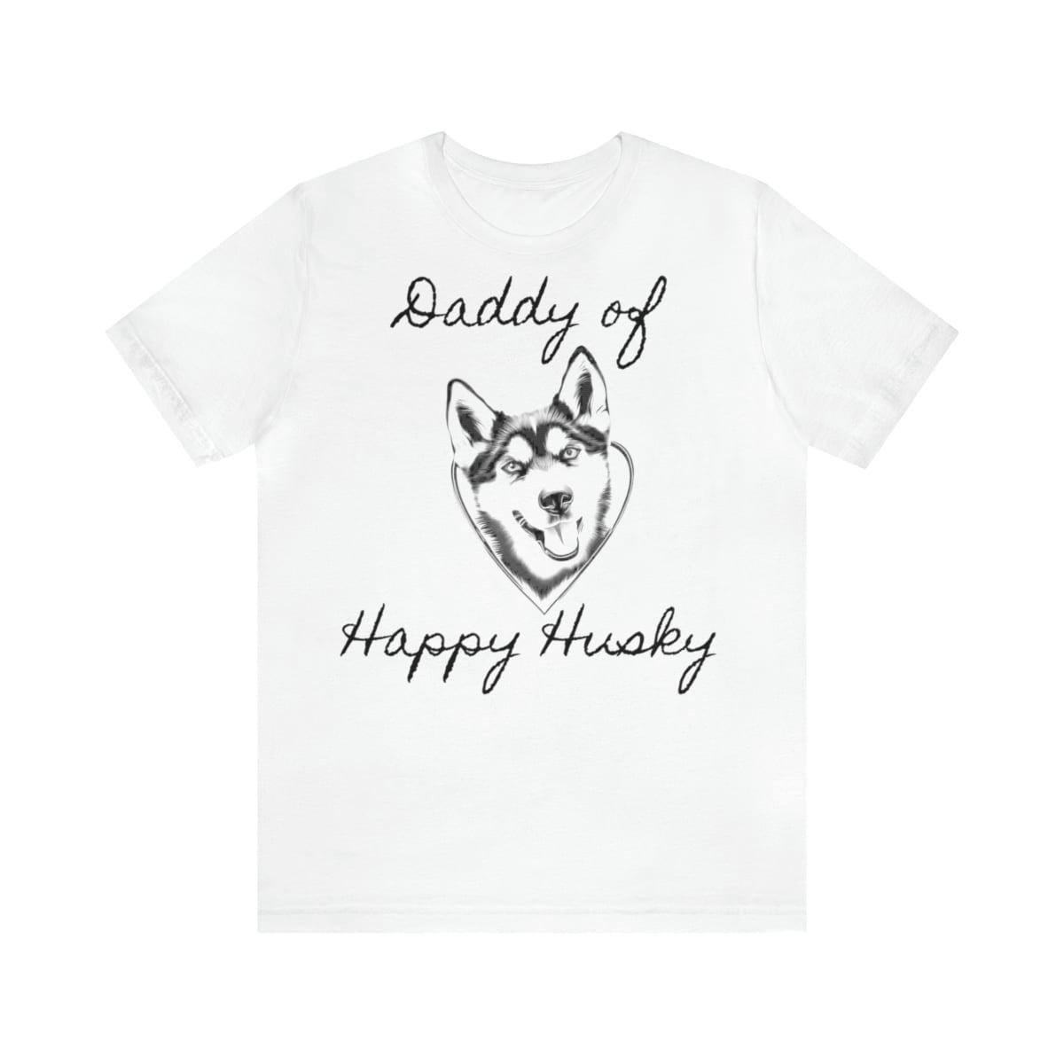 Med sin iögonfallande design med frasen ”Daddy of a Happy Husky” är den här t-shirten en bra samtalsämne och ett perfekt sätt att visa din kärlek till din husky.